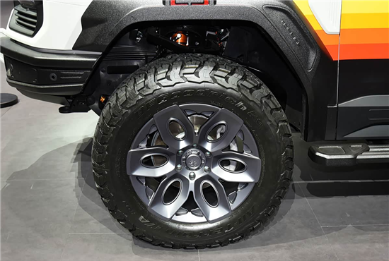 车侧部分,新车采用专属的拉花设计,辨识度更高。另外后保险杠也进行了优化,外挂式备胎采用外露式设计,尾部还增加了拖车钩,更具野性。
